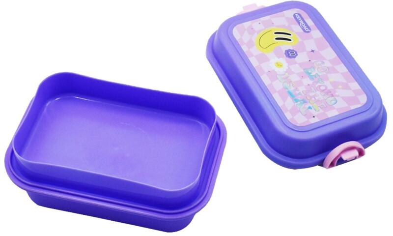A műanyag zacskók ideje lejárt! két szintből álló uzsonnás doboz kiváló minőségű PP műanyagból segíti a biztonságos élelmiszer tárolást és szállítást két záró füllel lila színben, lányos dizájnnal