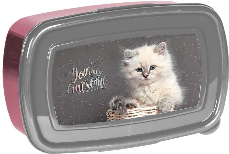 A jó minőségű, BPA mentes műanyagból készült Cicás műanyag uzsonnás doboz - You are awsome (PP24AW-3022)  szép színeivel és cuki cicát ábrázoló mintájával iskolás és ovis kislányoknak is tökéletes választás. A doboz kialakításánál nagy gondot fordítottak a szivárgásmentességre, valamint mosogatógépben is mosható.  A Cicás műanyag uzsonnás doboz  elengedhetetlen kiegészítője a hátizsáknak kirándulások alkalmával vagy az óvodában, iskolában a tízórai tárolásához.